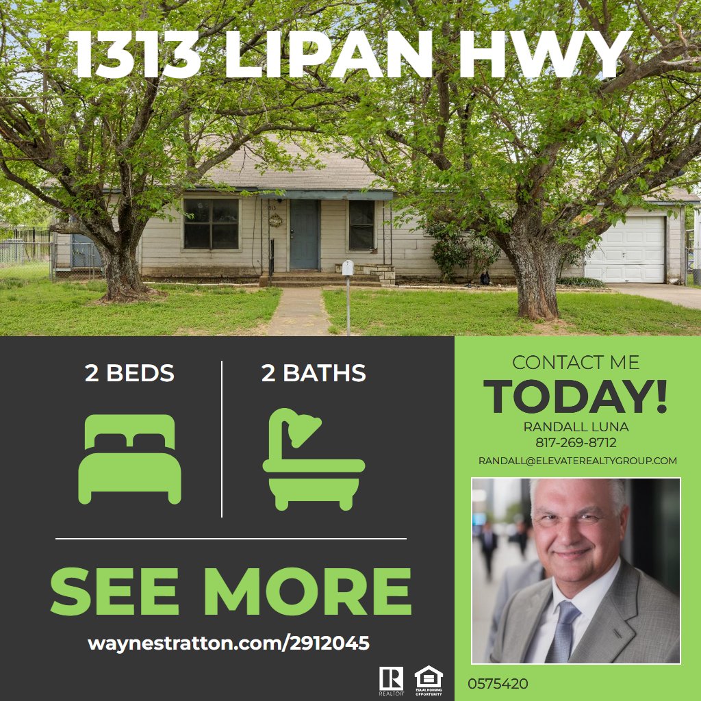INVESTOR SPECIAL. This is an awesome opportunity to invest in Granbury real estate. This home was built in 1968 and has a lot of old-world charm. Located on Lipan HWY on almost half an acre, the possibilities for this one are endless. Purchase and flip it for profit or turn it into a rental for positive monthly income. OR purchase it and remodel it into your dream home. With a huge backyard that backs onto a large field, the views of the countryside are gorgeous. Put a little TLC into this one and make it your own. Already connected to city sewer and water, no septic required. ***Home is being sold through an estate and will be sold as-is*** Come see this great deal while you can, won't last long!