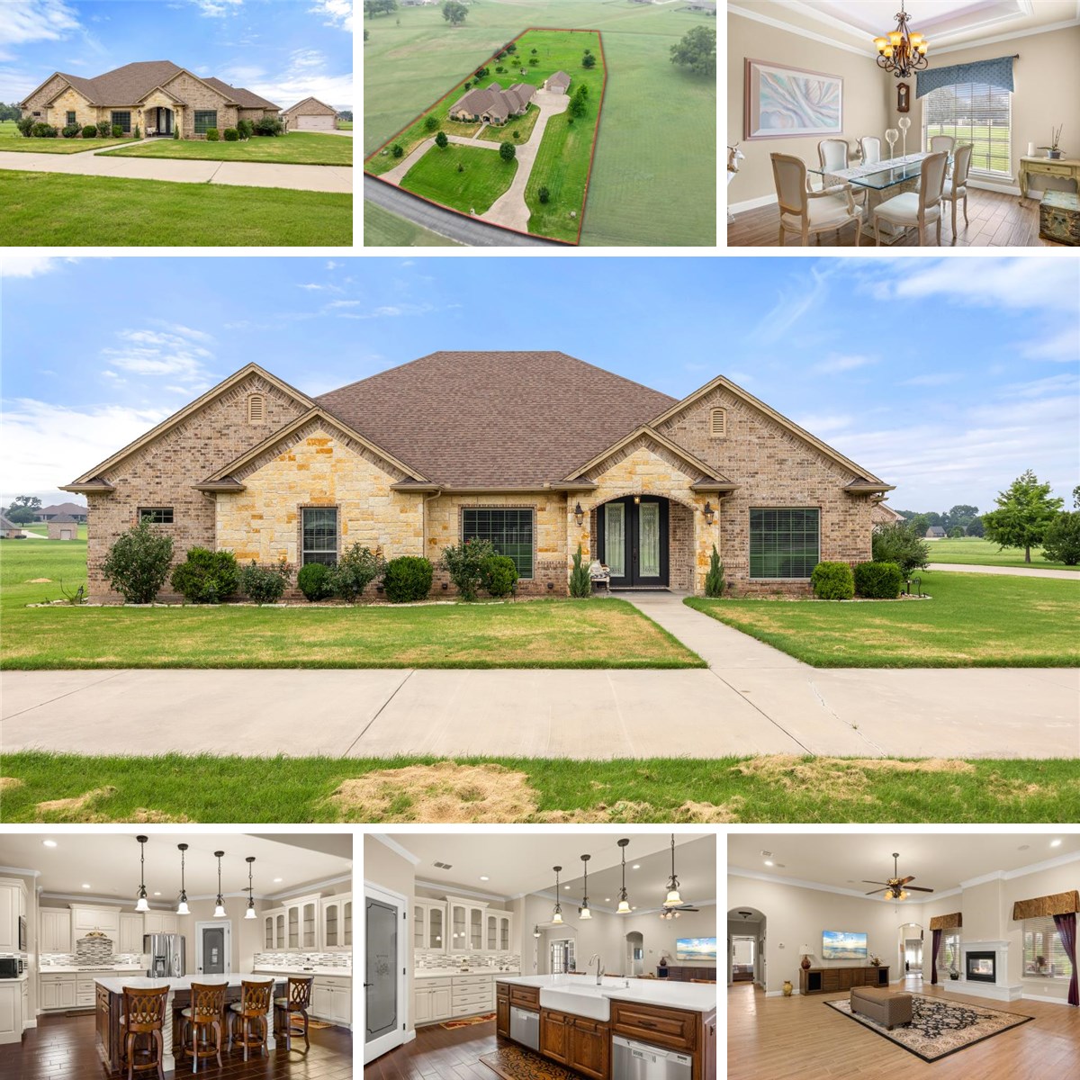 - Living area- Surround sound, electric in floor Kitchen- Wine room is climate controlled Quartz counter tops 2 tankless water heaters Primary Bed- Fireplace Safe room - not attached to the house In primary closet TV in primary bathroom mirror Garage- Insulated garage doors Water softener system Christmas lights around the whole house SHOP- A/C, full bathroom, cabinets, Jet air filtration system, Fully decked attic for storage. TV mount YARD- 2 peach trees, 1 apple, 1 persimmons, garden Outdoor shower behind shop BACK PORCH- TV mount, surround sound, outdoor kitchen