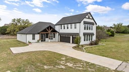 Welcome to this stunning modern farmhouse situated on a spacious homesite, offering the perfect blend of timeless charm and contemporary design. This beautifully crafted home features striking white brick exterior, bold black accents, and inviting wood beam details that create exceptional curb appeal. Step inside to discover an open-concept layout designed for both everyday living and entertaining. The home offers a seamless flow between the living, dining, and kitchen areas, complemented by abundant natural light and thoughtfully designed finishes throughout. The spacious primary suite provides a private retreat, while additional bedrooms offer flexibility for family, guests, or a home office. A large attached garage and extended driveway provide ample parking and functionality. Enjoy peaceful outdoor living with plenty of room for entertainment, or simply take in the surrounding Texas landscape. Whether you’re looking for quiet country-style living or a stylish place to host, this property delivers. Conveniently located with easy access to nearby amenities while still offering privacy and space—this is modern farmhouse living at its best
