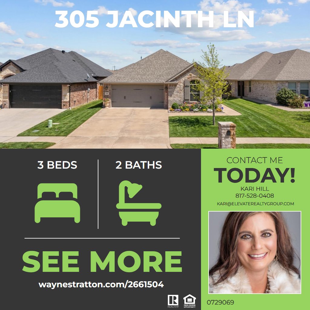 Very well maintained, like new home located in Gemstone Estates complete with sidewalks and street lights. Located just off of Hwy 377 on the Fort Worth end of town which allows you to skip the city traffic. No HOA. Open concept floor plan with large kitchen island, under cabinet lighting, pantry, and an abundance of cabinet space. Spray foam insulation keeps the utility bills down! City water and sewer. Plenty of easy access attic space for storage. Split floor plan with primary bedroom being separate from the other two bedrooms. Primary has an amazing ensuite bath including double sinks, large soaking tub, and separate shower. Closet is a dream! Backyard has a privacy fence and large east-facing covered back porch. Enjoy your evenings out back without getting beat down by the sun! Roof was replaced in 2025. Whole house-air cleaning system was installed in 2023 for clean air quality.
