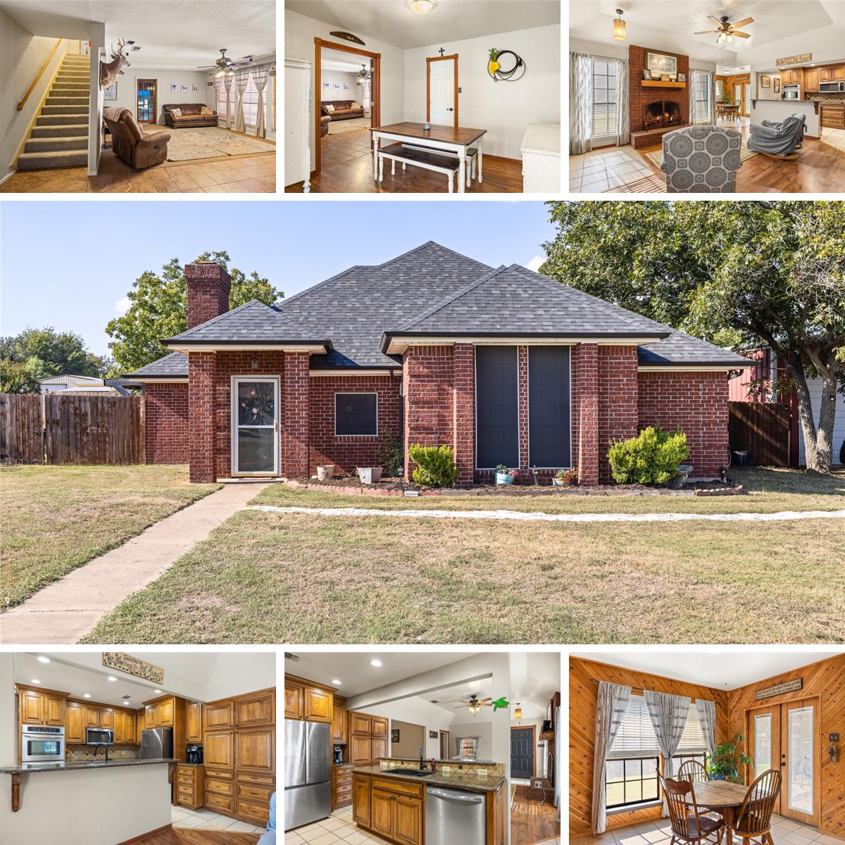Gorgeous drive up appeal to this lovely 4 bedroom, 3 bathroom home located in - The Hills of Granbury. The open floor plan with soaring ceilings gives an open concept ambiance enhanced with a warm and inviting wood burning fireplace. The kitchen offers granite countertops, separate cooktop with double ovens and generous cabinets! So many places to enjoy with a breakfast room, formal dining, family room, living room and office. In addition - a large flex room could be utilized for a multitude of uses including hobby, man-cave or another TV room - just to mention a few. - NO HOA - Located Outside City Limits! The large one half acre lot is another location to enjoy this home! Including an above ground pool with a large deck, 30 X 30 metal shop with AC and electric that opens up on both sides. Wonderful covered patio looking back into the pool. Loads of trees - throughout! - A MUST SEE!